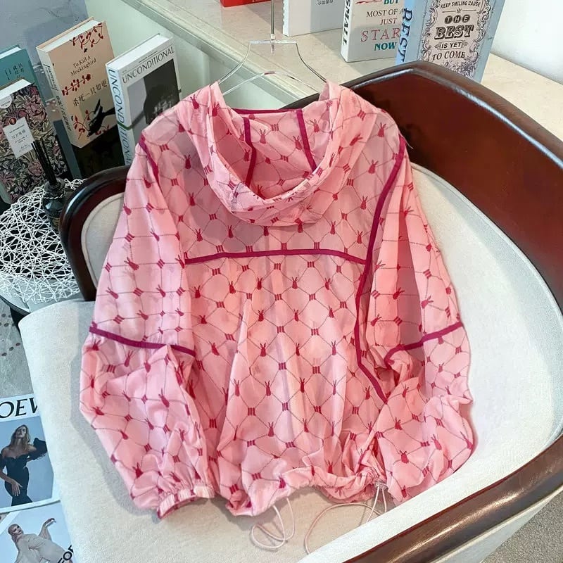 レディース ブルゾン アウター 長袖 フード付き 日焼け止め チェック柄 プリント 薄手 ジッパー 前開き ルーズ きれいめ 上品 おしゃれ お洒落 大人可愛い 大人女子 かっこいい カジュアル フェミニン クール レトロ 主役級 存在感 こなれ感 抜け感 夏 10代 20代 30代 お出かけ デート 女子会 お泊まり 旅行 ショッピング アウトドア 普段使い デイリー 韓国 韓国系 オルチャン ファッション コーデ トレンド インスタ映え スタイルアップ S M L XL 2XL ピンク ホワイト