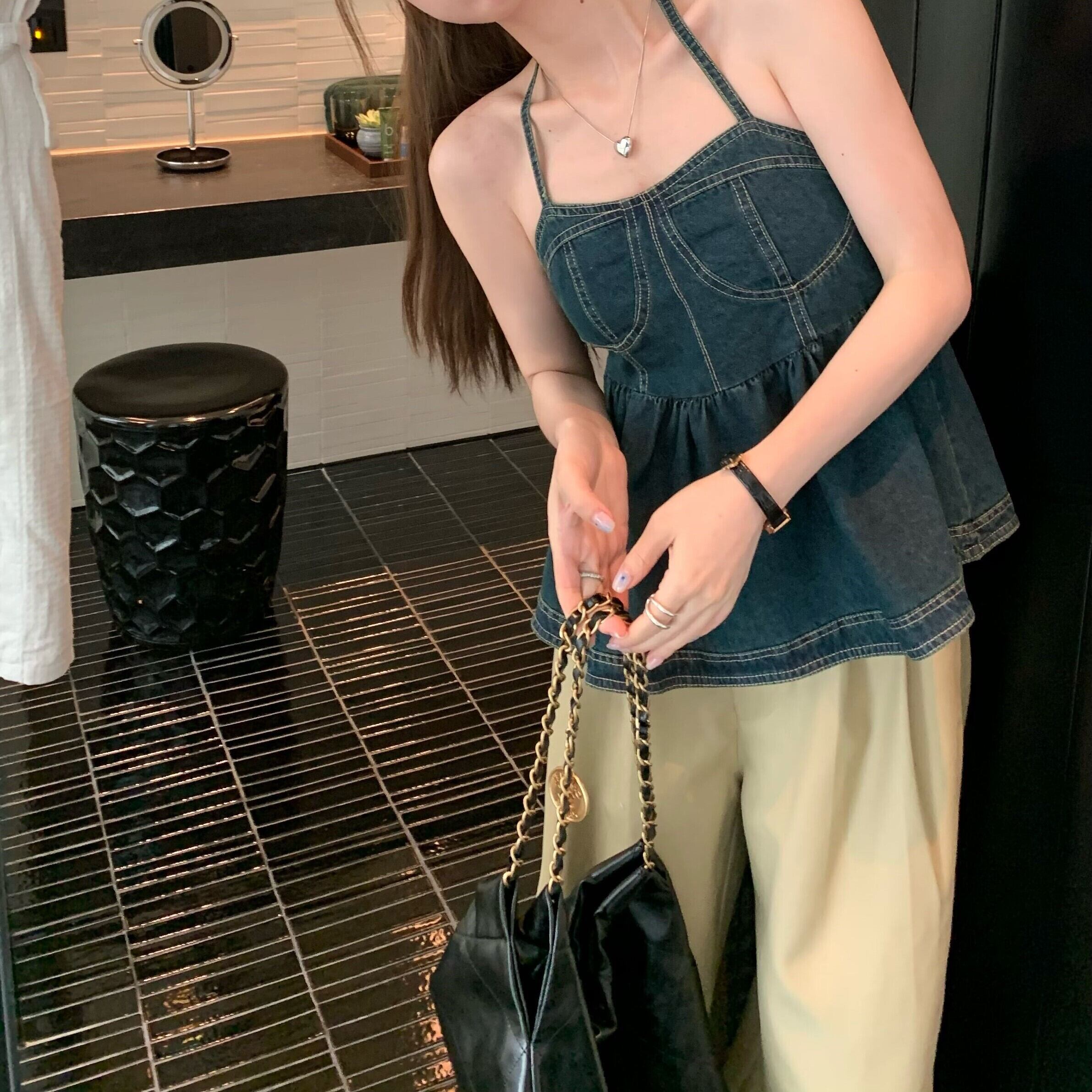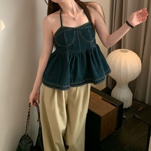 レディース トップス キャミソール ショート 袖なし ホルターネック ワンショルダー スリム 背中開き デニム 綿 大人可愛い きれいめ シンプル カジュアル おしゃれ かっこいい ラフ ガーリー クール 都会的 ナチュラル 無地 春 夏 通勤 デート お出かけ お泊まり アウトドア キャンプ イベント 旅行 海 ビーチ 公園 女子会 休日 ホテル ショッピング ライブ カフェ フェス お揃い 韓国 コーデ 楽ちん プレゼント 普段使い モテ インスタ映え S M L XL 2XL 大きいサイズ ブルー