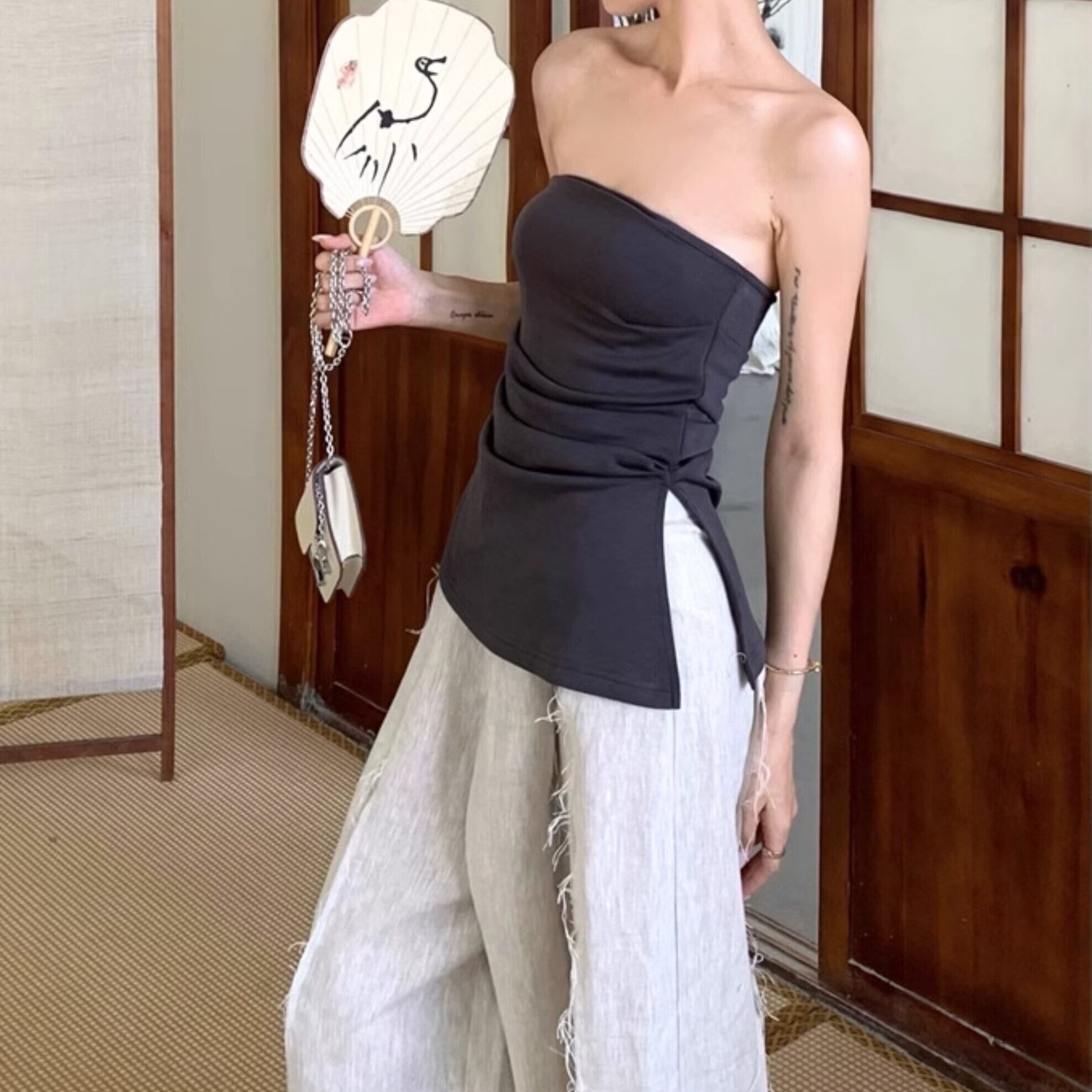 その日の気分やシーンに合わせて着こなしの幅が広がる、レディースチューブトップが登場しました!オフショルダーなので、肩をちらりと見せるセクシーさと、華やかな印象を演出してくれます。シンプルなデザインなので、どんなボトムスとも相性抜群!大人可愛い雰囲気からクールで都会的な印象まで、様々なスタイリングが楽しめます。