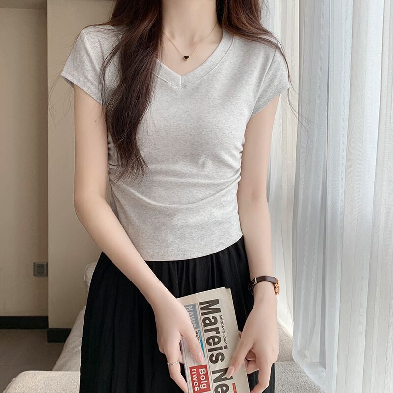 シンプル Vネック 半袖 Tシャツ レディース トップス カットソー プルオーバー インナー フレンチスリーブ 襟なし スリム 細身 綿 かわいい 大人可愛い きれいめ シンプル カジュアル おしゃれ こなれ感 無地 春 夏 秋 ママ 通勤 学生 学校 通学 デート お出かけ 旅行 公園 女子会 休日 ショッピング カフェ 重ね着 普段使い 着回し レイヤード S M L XL 白 ホワイト グレー ダークグレー アプリコット