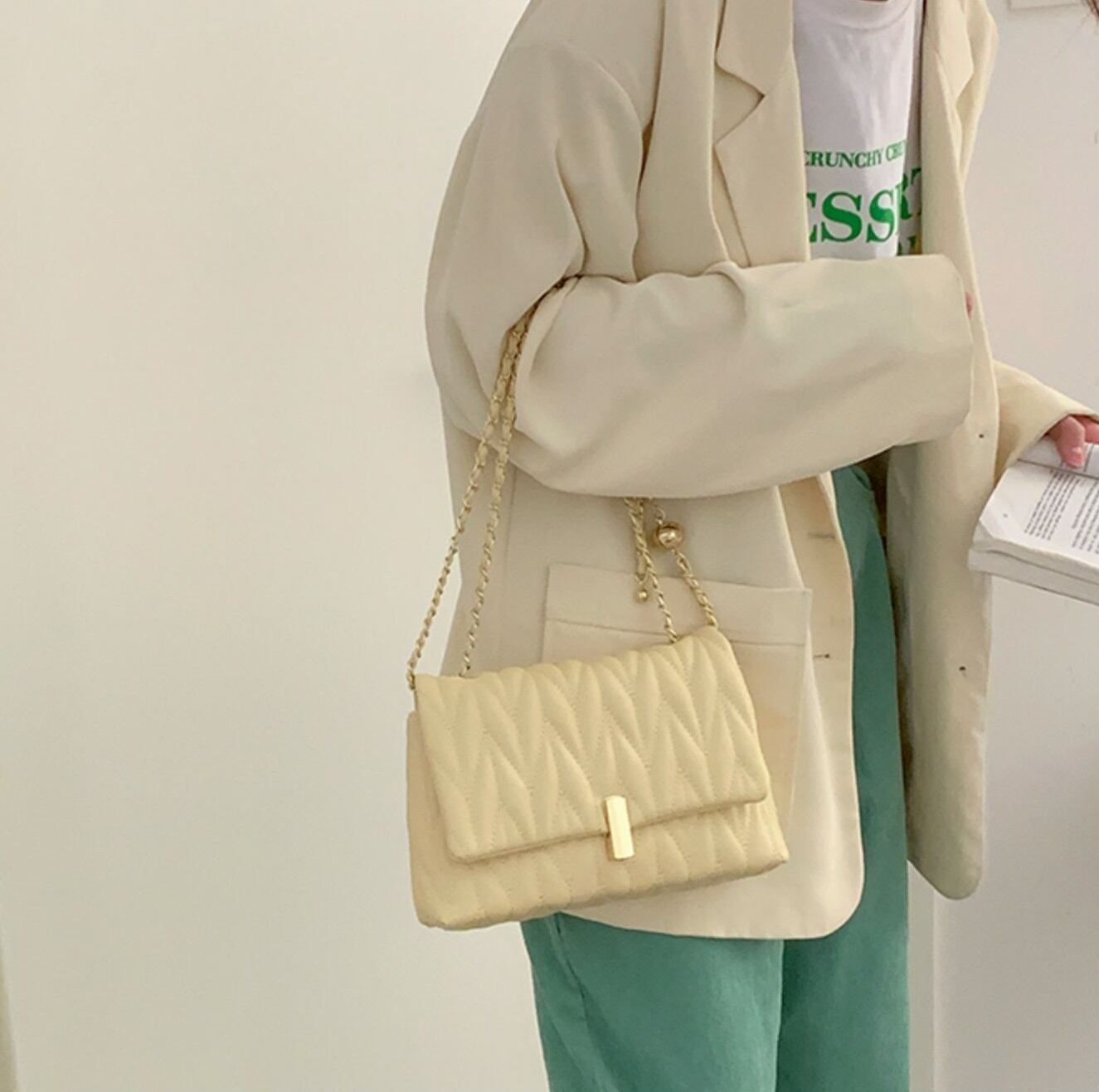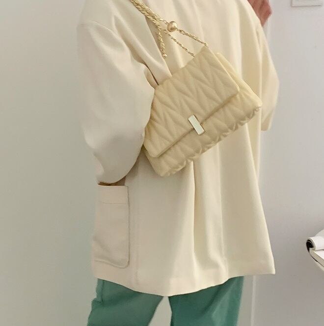 オシャレ度アップ間違いなしのゴールドチェーンキルティングミニショルダーバッグが登場しました!菱形のフォルムがシンプルながらエレガントな印象を与え、上品なレザー素材とゴールドのチェーンが大人可愛いスタイルを演出します。斜めがけ、肩がけ、手持ち、様々なスタイルで持てるので、通勤や通学、デート、お出かけにも大活躍間違いなし!小さめのサイズ感が女性らしさを引き立て、どんなシーンでも使いやすいのが魅力です。ショルダーバッグはワードローブの必須アイテム、ぜひこの一品でおしゃれ度を格上げしてくださいね。