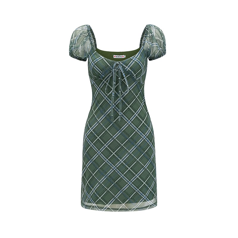 レディース ワンピース ドレス ショート 半袖 パフスリーブ Uネック Aライン ハイウエスト 大人可愛い きれいめ シンプル おしゃれ かっこいい レトロ ガーリー クール フォーマル 都会的 アメリカン ナチュラル チェック 春 夏 デート お出かけ お泊まり パーティー イベント 旅行 海 レストラン ビーチ 女子会 休日 バカンス ホテル ショッピング カフェ お揃い 韓国 コーデ 楽ちん プレゼント 美脚 脚長 普段使い モテ インスタ映え S M L XL グリーン