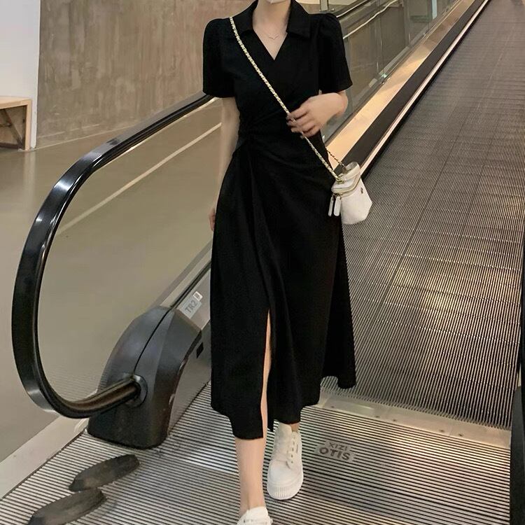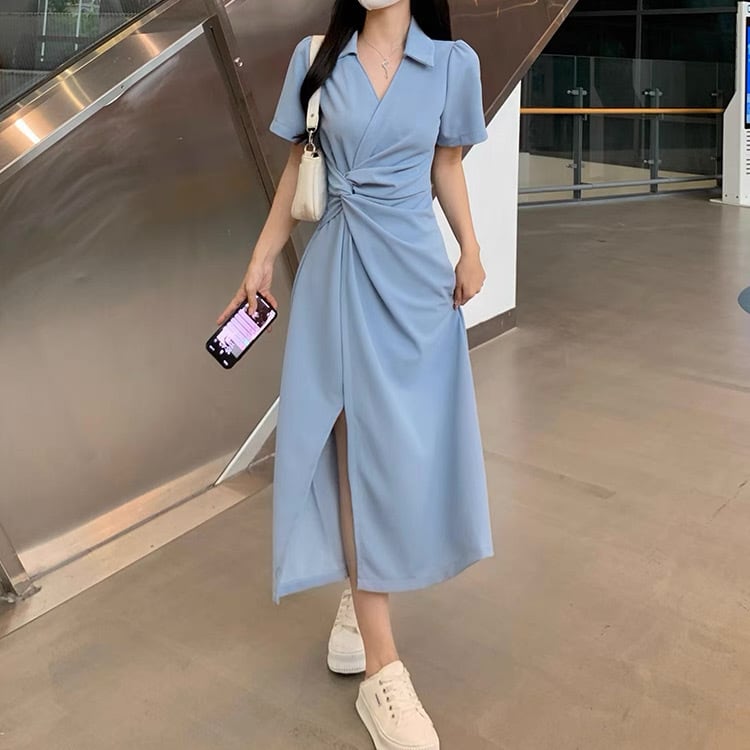 レディース ワンピース シャツ オールインワン シャツワンピ ミモレ ロング 長袖 Vネック 襟付き セミフレア スリム 細身 Aライン スマート ラップ フェミニン ウエストマーク スリット 大人可愛い きれいめ シンプル 上品 おしゃれ クール エレガント 抜け感 無地 春 夏 ママ デート お出かけ リゾート 旅行 海 ビーチ 女子会 ショッピング 韓国 オルチャン コーデ 美脚 脚長 普段使い モテ 清楚 M L XL 2XL 3XL 4XL 大きいサイズ 黒 ブラック ピンク ブルー グリーン