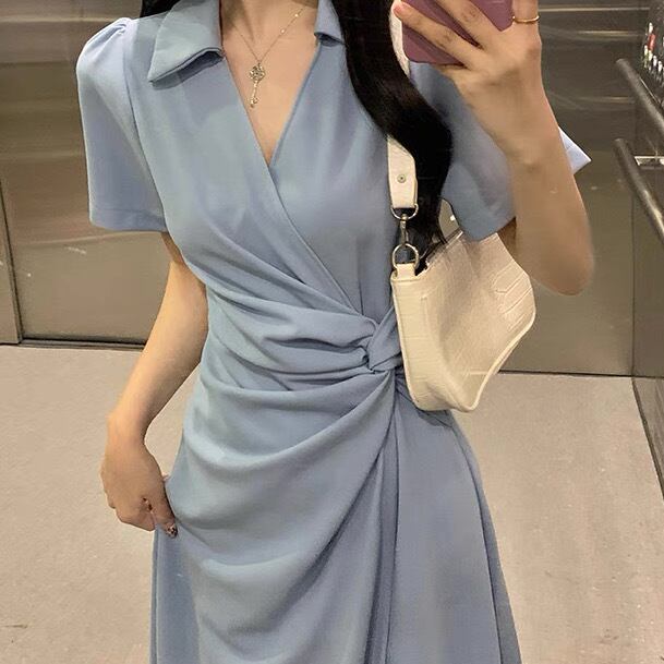 ラップ風のデザインがおしゃれな印象を与え、サイドに絞ったウエストマークでスリムなシルエットを演出してくれます。