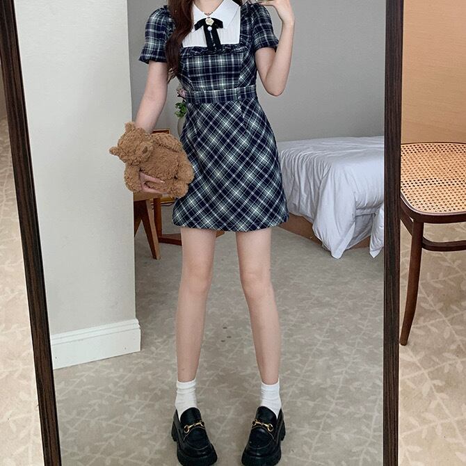 レディース 2タイプ スカート ワンピース シャツワンピ ミニスカート ロングスカート ミニ ショート ロング 半袖 パフスリーブ 襟付き タイト スリム 細身 Aライン ドッキング フェミニン リボン ウエストマーク ハイウエスト かわいい おしゃれ ガーリー ヴィンテージ キュート ゴシック ロリータ クラシカル カレッジ風 学生風 チェック 春 夏 デート お出かけ 休日 ショッピング コンサート ライブ コスプレ お揃い 双子 コーデ M L XL 2XL 3XL 4XL 大きいサイズ ブルー 青