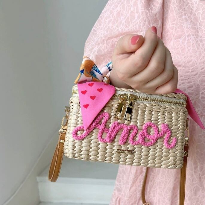 ビーチやリゾートでのお出かけにぴったりなショルダーバッグです。大人可愛いデザインにリボンや文字、さらにはジッパーがポイント。シンプルでありながらも存在感があり、どんなコーディネートにも馴染む優れものです。肩掛けや手持ちのスタイルで、その日の気分やシーンに合わせて使い分けられます。