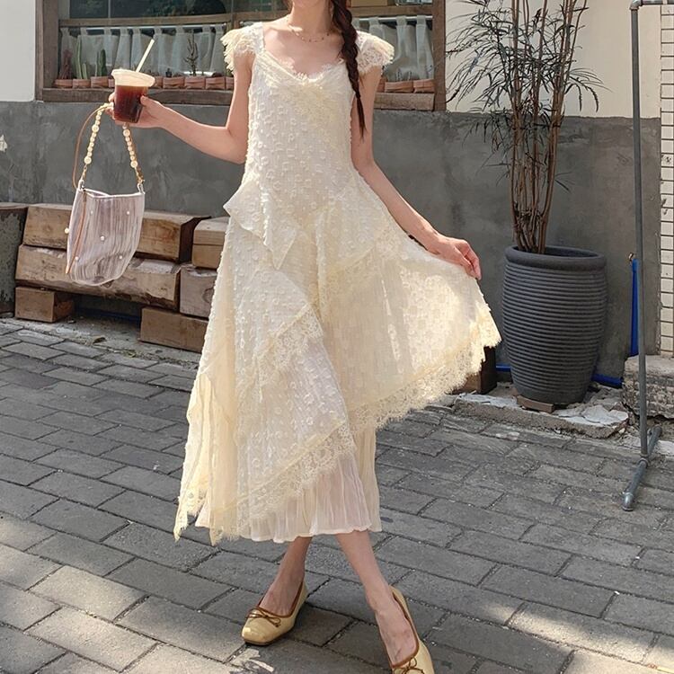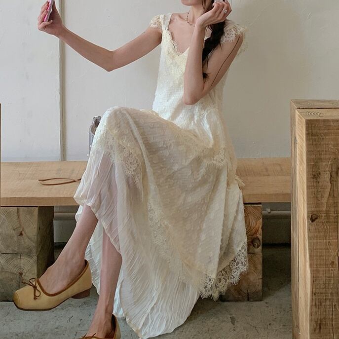ワンピース ミモレ ロング レディース 袖なし ノースリーブ Vネック フレア Aライン フェミニン レース フリル ふわふわ 透け感 かわいい 大人可愛い きれいめ シンプル 上品 おしゃれ ガーリー 存在感 ラブリー キュート ロリータ プリンセス ロマンティック ナチュラル 花柄 フラワー ロングシーズン デート お出かけ パーティー イベント リゾート 旅行 レストラン 休日 バカンス 高原 ガーデン ショッピング 発表会 コンサート 体型カバー 普段使い 清楚 S M L ゆったり ベージュ