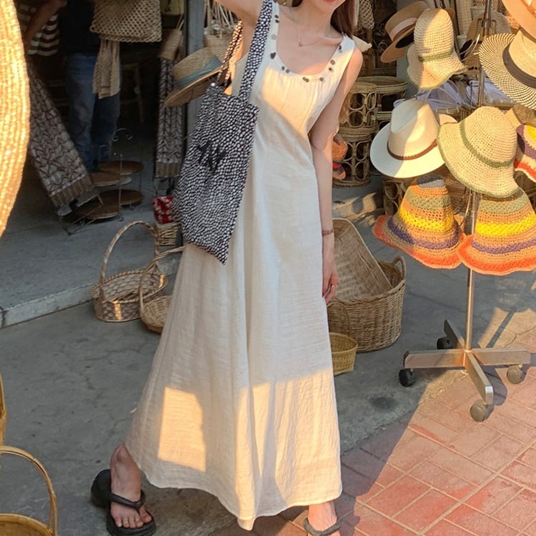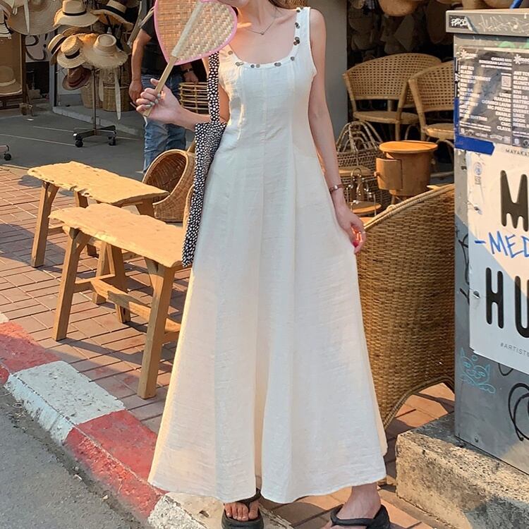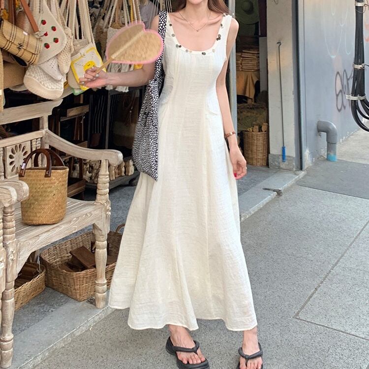 ワンピース ロング レディース 袖なし ノースリーブ ラウンドネック フレア Aライン ハイウエスト 透け感 かわいい 大人可愛い きれいめ シンプル カジュアル 上品 おしゃれ レトロ こなれ感 ラフ ガーリー エレガント 存在感 とろみ感 抜け感 キュート カントリー ナチュラル セクシー 無地 夏 ロングシーズン デート お出かけ パーティー イベント リゾート 旅行 ビーチ 女子会 休日 バカンス ホテル ショッピング カフェ モノトーン 楽ちん 体型カバー モテ 清楚 S M L 白 ホワイト