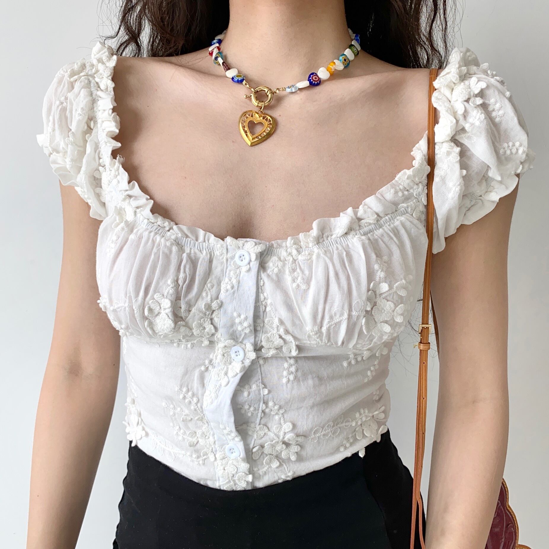 レディース トップス シャツ ショート ノースリーブ パフスリーブ Uネック スリム ストリート ボタン 大人可愛い きれいめ おしゃれ かっこいい レトロ ラフ ガーリー クール 都会的 ナチュラル 無地 春 夏 通勤 デート お出かけ お泊まり イベント リゾート 旅行 海 ビーチ 女子会 休日 ショッピング コンサート ライブ カフェ フェス 韓国 コーデ 楽ちん プレゼント 普段使い 着回し モテ インスタ映え S M L ホワイト