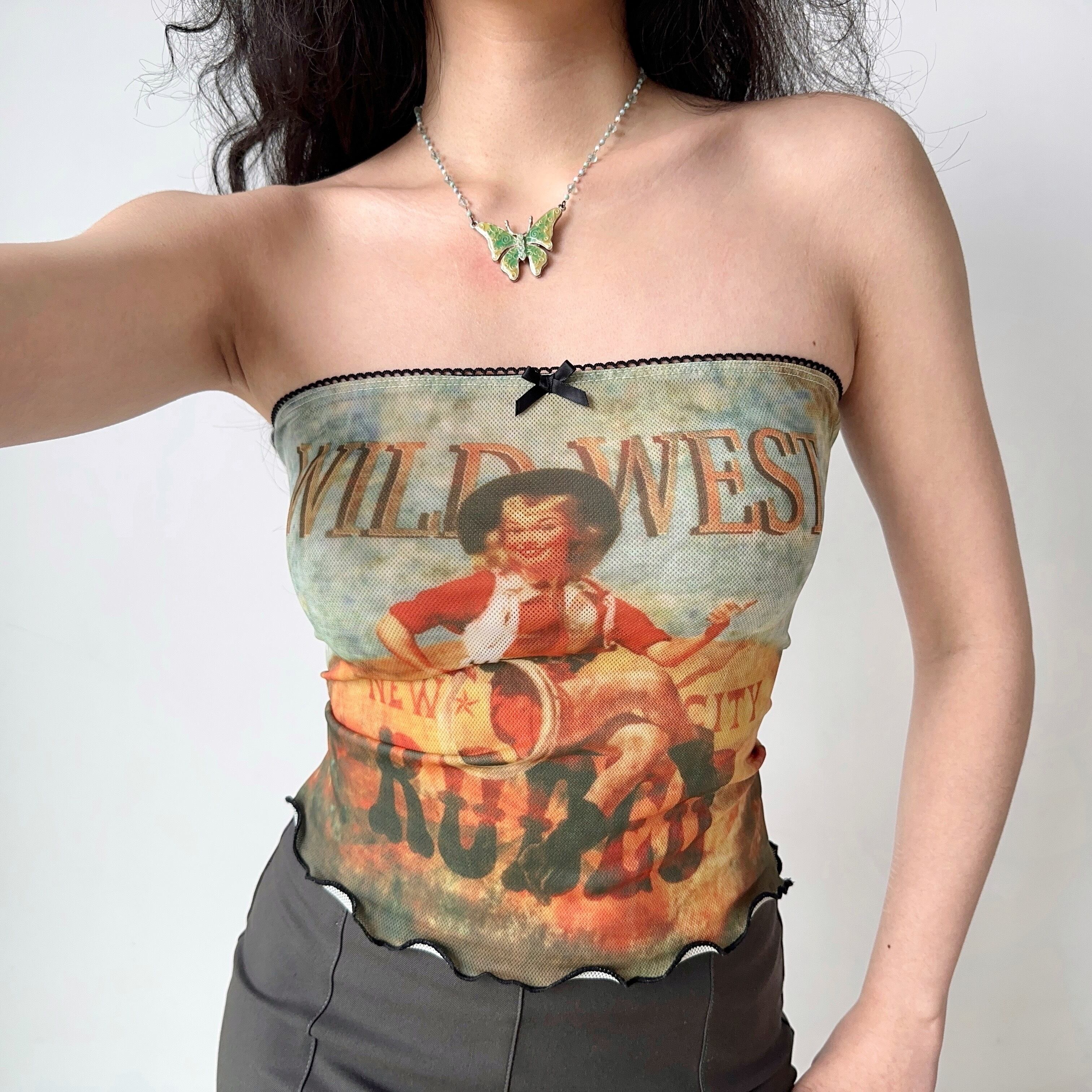 流行のアイテム、チューブトップが新登場!オフショルダーのデザインで女性らしさを引き立て、ショート丈なのでトレンド感も満載。さりげないセクシーさを演出しつつ、ストリートスタイルや都会的なお出かけにもピッタリです。プリント入りで存在感も抜群!春夏のシーズンにぴったりなアイテムです。カジュアルからおしゃれまで、幅広いコーディネートにマッチします。