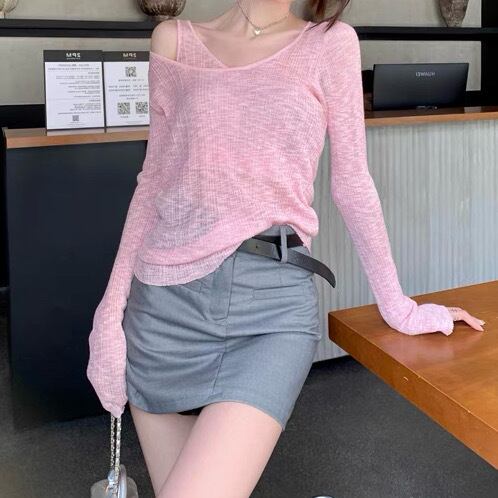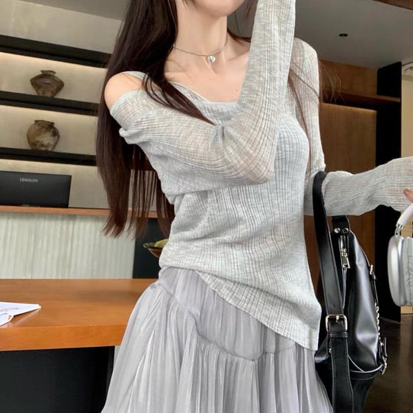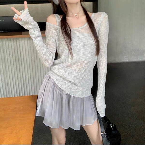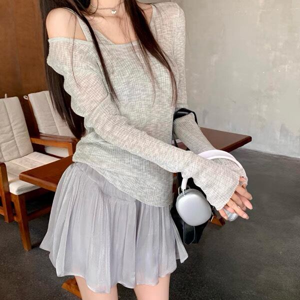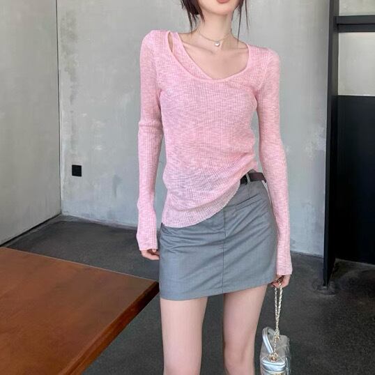 レディース トップス ロンT カットソー 長袖 ラウンドネック タイト スリム 細身 ドッキング ストリート 変形 リブニット 透け感 アメカジ 薄手 伸縮性 シンプル カジュアル おしゃれ かっこいい こなれ感 ラフ 個性的 クール 抜け感 キュート カレッジ風 学生風 ベーシック アメリカン アクティブ 無地 春 秋 学生 学校 通学 デート お出かけ アウトドア 公園 女子会 休日 ガーデン ショッピング 重ね着 韓国 オルチャン コーデ 普段使い 着回し レイヤード S M L グレー ピンク
