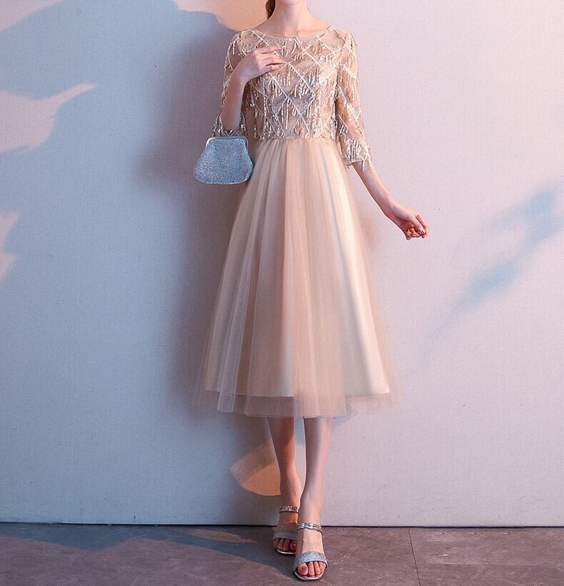 レディース ワンピース ドレス ショート ミモレ ノースリーブ 5分袖 Aライン ファスナー スパンコール 大人可愛い きれいめ 上品 おしゃれ ガーリー クール エレガント フォーマル 都会的 ナチュラル 無地 春 夏 結婚式 二次会 披露宴 デート お出かけ パーティー イベント レストラン 女子会 休日 ホテル コンサート 韓国 コーデ 楽ちん プレゼント モテ インスタ映え S M L XL 2XL 3XL シルバー シャンパン