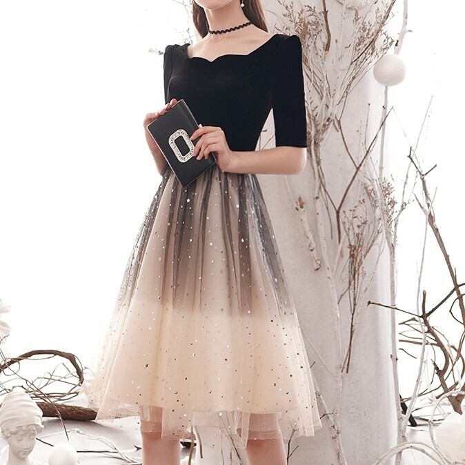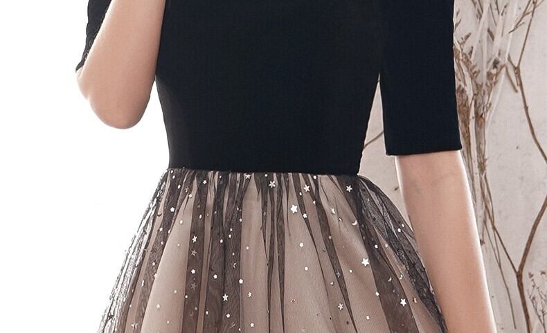 レディース ワンピース ドレス 膝丈 5分袖 Uネック ワンショルダー Aライン ファスナー スパンコール 大人可愛い きれいめ 上品 おしゃれ ラフ ガーリー クール エレガント 主役級 存在感 フォーマル 都会的 ナチュラル 無地 春 夏 結婚式 二次会 披露宴 デート お出かけ パーティー イベント レストラン 女子会 休日 ホテル コンサート 韓国 コーデ 楽ちん プレゼント モテ インスタ映え S M L XL 2XL 3XL ブラック
