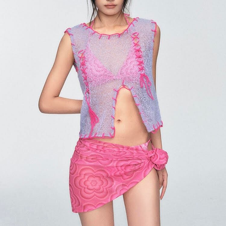 女性の魅力を引き立てるベスト付きのビキニ水着セット。胸元の谷間やウエストラインを美しく引き立てます。セクシーなデザインでありながら、ノースリーブで日焼け対策もバッチリ。リゾートやプールサイドでのお洒落を存分に楽しめるアイテムです。