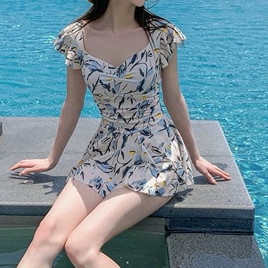 水着 スイムウェア レディース ワンピース 体型カバー パッド付き 半袖 ノースリーブ フレア袖 Vネック ミニスカート フレアスカート Aライン サイドギャザー 伸縮性 スカート かわいい 大人可愛い きれいめ おしゃれ お洒落 レトロ キュート ガーリー フェミニン コンサバ フェアリー プリンセス 花柄 柄 フラワー リゾート 旅行 温泉 プール 夏 海 ビーチ 水遊び 海外 美脚 脚長 スタイルアップ スタイル コーディネート コーデ 韓国 モテ スタイルカバー サイズ M L XL アプリコット