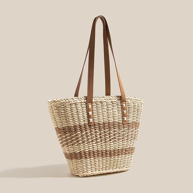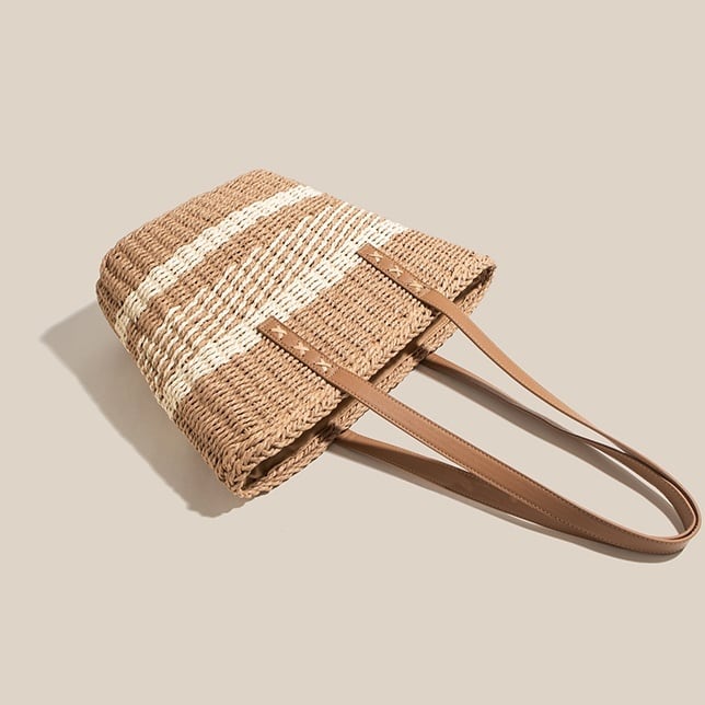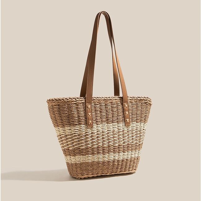 グラデーションのボーダー柄が大人可愛い大容量のストローバッグ。