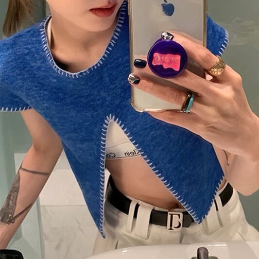 レディース トップス カットソー Tシャツ ショート クロップド丈 半袖 ラウンドネック ストリート スリット ハイウエスト アメカジ 淵取り シンプル カジュアル おしゃれ かっこいい こなれ感 個性的 クール 抜け感 都会的 ベーシック アメリカン アクティブ ワイルド ダンサー 無地 春 夏 学生 学校 お出かけ アウトドア 公園 女子会 休日 ガーデン ショッピング コンサート ライブ フェス 重ね着 韓国 コーデ 脚長 普段使い 着回し レイヤード インスタ映え S M L XL 2XL ブルー