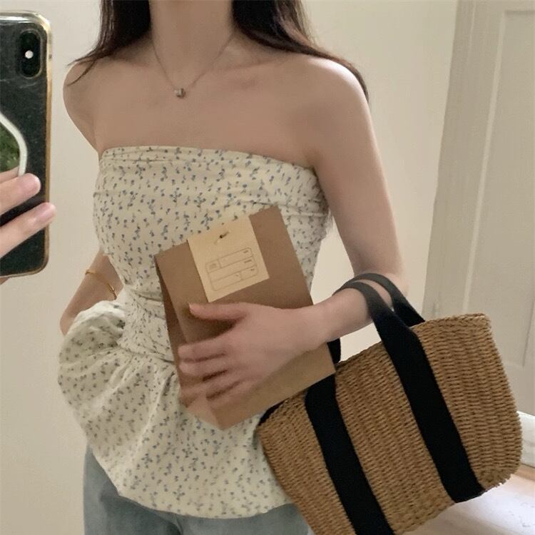 レディース トップス チューブトップ 袖なし フレア タイト スリム 細身 切り替え 裾ワイド フェミニン バックレス 大人可愛い カジュアル おしゃれ レトロ ガーリー ヴィンテージ キュート クラシカル ナチュラル セクシー 花柄 フラワー 小花柄 春 夏 デート お出かけ リゾート 旅行 海 プール ビーチ 公園 女子会 休日 ガーデン カフェ 韓国 オルチャン コーデ スタイル コーディネート 普段使い 着回し サイズ S M L XL 2XL 大きいサイズ 2色展開 白 ホワイト 黒 ブラック
