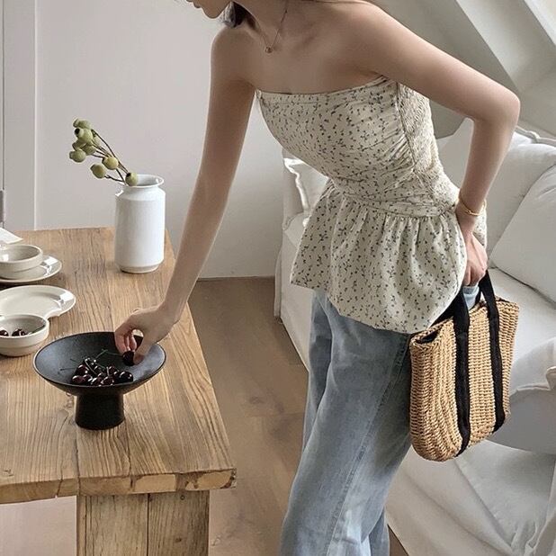 レトロガーリーな雰囲気が魅力のチューブトップ。