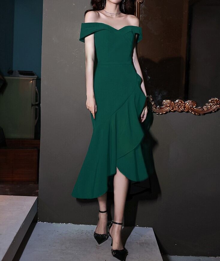 レディース ワンピース ドレス ロング ワンショルダー フィッシュテール ファスナー 大人可愛い きれいめ 上品 おしゃれ ラフ ガーリー クール エレガント 主役級 存在感 フォーマル 都会的 ナチュラル 無地 春 夏 結婚式 二次会 披露宴 デート お出かけ パーティー イベント レストラン 女子会 休日 ホテル コンサート 韓国 コーデ 楽ちん プレゼント モテ インスタ映え S M L XL 2XL 3XL グリーン