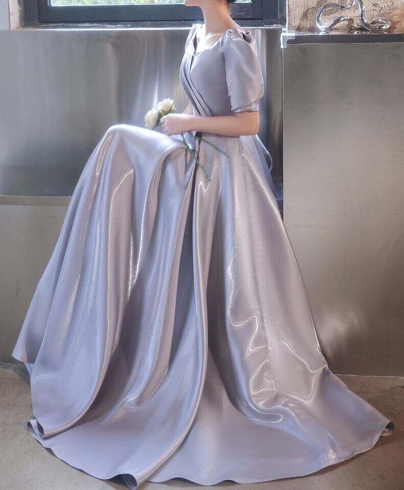 レディース ワンピース ドレス マキシ 半袖 パフスリーブ スクエアネック ファスナー 大人可愛い きれいめ 上品 おしゃれ ラフ ガーリー クール エレガント 主役級 存在感 フォーマル プリンセス 都会的 ナチュラル 無地 春 夏 結婚式 二次会 披露宴 発表会 デート お出かけ パーティー イベント レストラン 女子会 休日 ホテル コンサート 韓国 コーデ 楽ちん プレゼント モテ インスタ映え S M L XL 2XL 3XL グレー