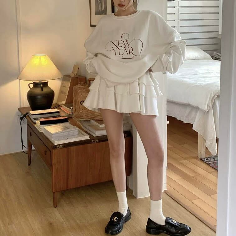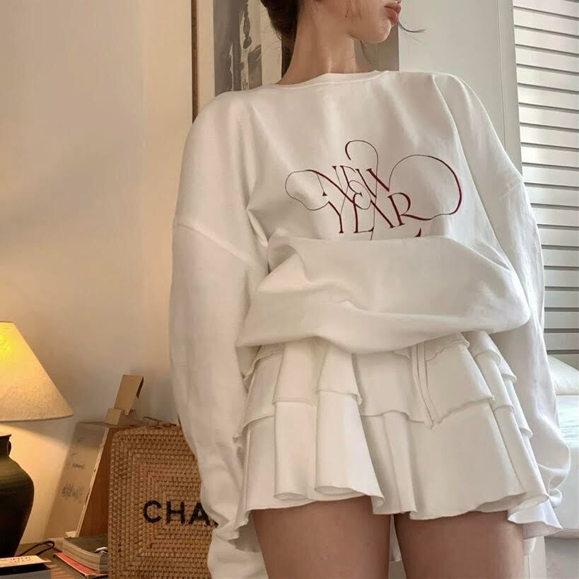 レディース セットアップ トレーナー 長袖 スウェット ラウンドネック 文字 プリント スカートパンツ ケーキスカート ショート丈 ハイウエスト 2点セット 上下セット ルーズ きれいめ 上品 おしゃれ お洒落 大人可愛い 大人女子 かっこいい シンプル フェミニン キュート ラブリー ガーリー フェミニン レトロ 主役級 存在感 こなれ感 抜け感 秋 10代 20代 お出かけ デート 旅行 女子会 普段使い 韓国 韓国系 オルチャン コーデ トレンド 流行 スタイル 脚長 美脚 ワンサイズ ホワイト