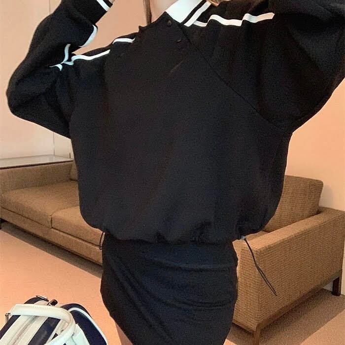 レディース セットアップ トレーナー 長袖 襟付き スウェット プルオーバー スカート ミニスカート ショート丈 ハイウエスト 2点セット 上下セット ルーズ きれいめ 上品 おしゃれ お洒落 大人可愛い 大人女子 かっこいい シンプル フェミニン スポーティー クール モダン シック フェミニン レトロ 主役級 存在感 こなれ感 抜け感 秋 冬 10代 20代 お出かけ デート 旅行 女子会 普段使い デイリー 韓国 韓国系 オルチャン コーデ トレンド 流行 スタイル 脚長 美脚 ワンサイズ ブラック