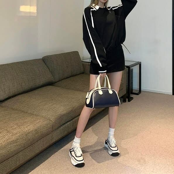トレンディなデザインのトレーナーとミニスカートのおしゃれなセットアップです。上品な襟付きできれいめに決められるトレーナーと、ハイウエストで脚長効果抜群のミニスカートがセットになっています。ルーズなフィット感がこなれ感を演出し、女性らしさもしっかりと引き立てます。普段使いからデートや女子会、旅行まで幅広いシーンで活躍すること間違いなしのアイテムです。