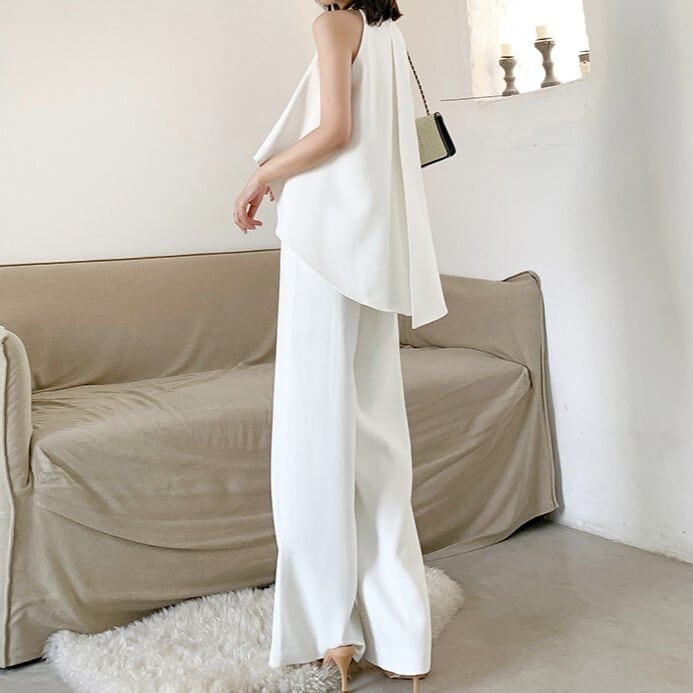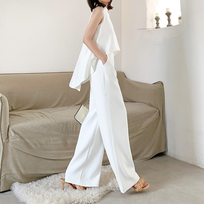 レディース トップス パンツ スーツ ノースリーブ ワイド スリム ファスナー ポケット ハイウエスト 大人可愛い きれいめ 上品 おしゃれ かっこいい ラフ クール エレガント 主役級 存在感 フォーマル 都会的 ナチュラル 無地 春 夏 結婚式 二次会 披露宴 発表会 デート お出かけ パーティー イベント レストラン 女子会 休日 ホテル コンサート 韓国 コーデ 楽ちん プレゼント 美脚 脚長 モテ インスタ映え S M L ホワイト ブラック