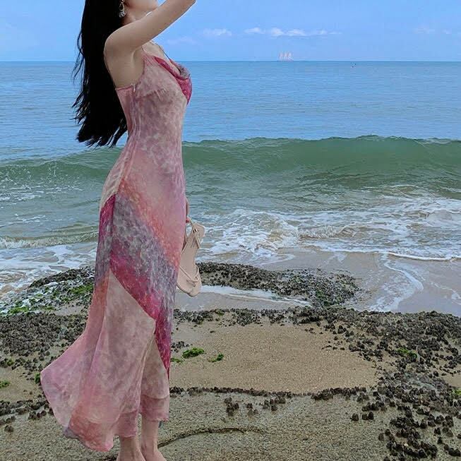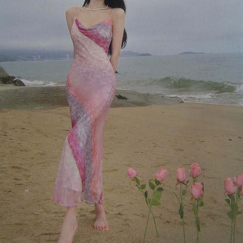 レディース ワンピース ノースリーブ ロング丈 サスペンダー 透け感 絞り染め バックレス タイト スリム 細身 きれいめ 上品 おしゃれ お洒落 大人可愛い 大人女子 かっこいい スタイリッシュ セクシー エレガント クール モダン フェミニン レトロ 主役級 存在感 こなれ感 抜け感 夏 20代 30代 40代 お出かけ デート 女子会 旅行 お泊まり リゾート ショッピング お泊まり 休日 普段使い 韓国 韓国系 オルチャン ファッション コーデ トレンド スタイル 脚長 美脚 S M L ピンク