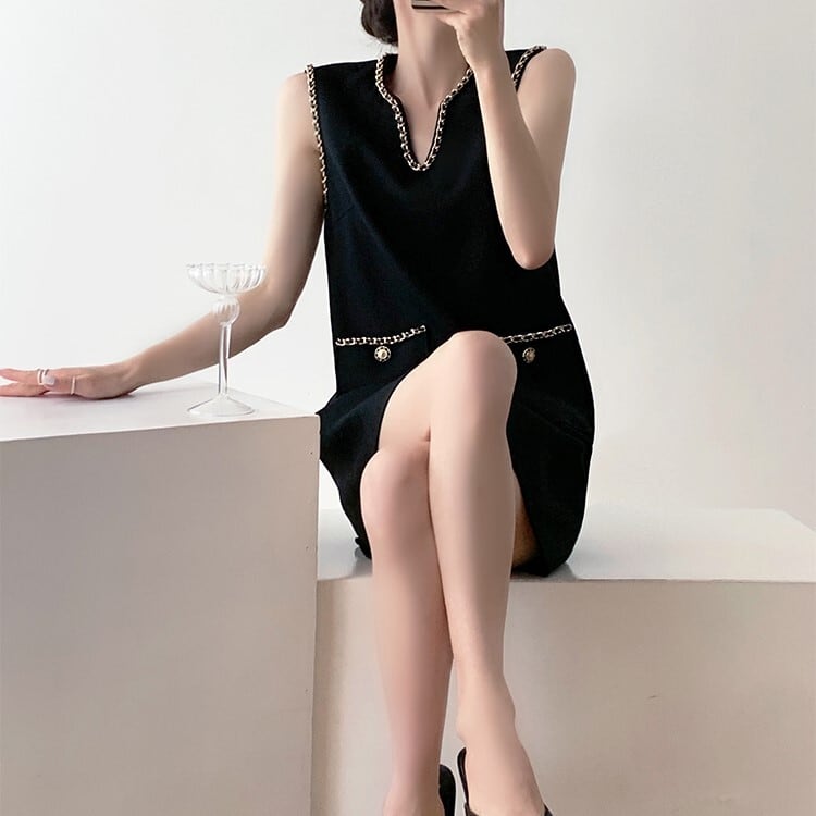 レディース ワンピース ドレス ショート ノースリーブ Vネック Aライン 大人可愛い きれいめ 上品 おしゃれ ラフ クール エレガント 存在感 フォーマル 都会的 ロマンティック 無地 春 夏 結婚式 二次会 披露宴 発表会 デート お出かけ パーティー イベント レストラン 女子会 休日 ホテル コンサート 韓国 コーデ 楽ちん プレゼント 美脚 普段使い モテ インスタ映え S M L ブラック