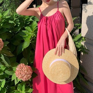 軽やかな風になびくロング丈ワンピースです。ノースリーブでロング丈、Aラインのシルエットが女性らしさを引き立て、サスペンダーとバックレスのデザインが大人のセクシーさを演出します。プリーツが優雅な動きを加え、ルーズなシルエットで上品さをキープ。シンプルな無地で、様々なシーンで活躍すること間違いなし。夏のデートや女子会、リゾートやショッピングにぴったりのアイテムです。