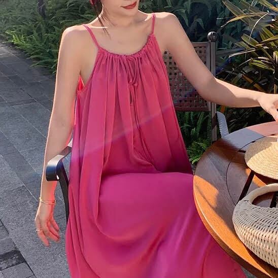 レディース ワンピース ノースリーブ ロング丈 ラウンドネック サスペンダー バックレス Aライン プリーツ 無地 ルーズ きれいめ 上品 おしゃれ お洒落 大人可愛い 大人女子 かっこいい スタイリッシュ セクシー エレガント クール モダン フェミニン レトロ 主役級 存在感 こなれ感 抜け感 夏 20代 30代 40代 お出かけ デート 女子会 旅行 お泊まり リゾート ショッピング 休日 普段使い 韓国 韓国系 オルチャン ファッション コーデ トレンド スタイル 脚長 S M L ローズレッド
