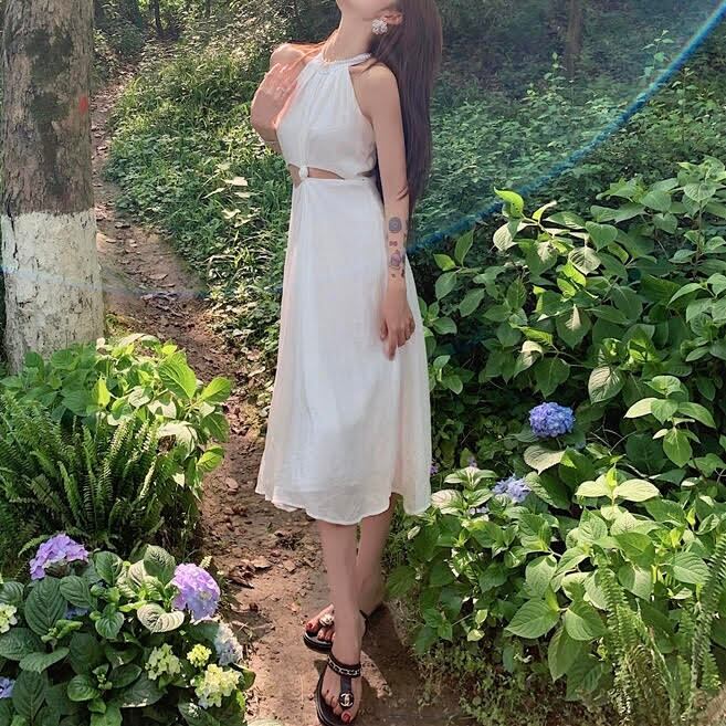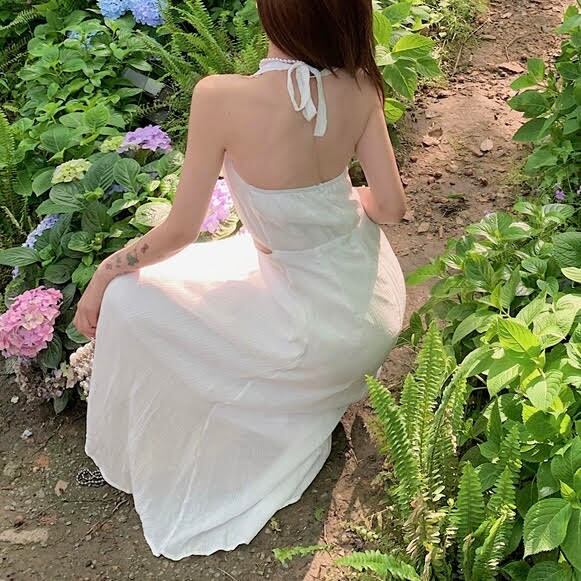 レディース ワンピース ノースリーブ ホルターネック ミモレ丈 プリーツ Aライン 透け感 バックレス スリム 細身 きれいめ 上品 おしゃれ お洒落 大人可愛い 大人女子 かっこいい スタイリッシュ セクシー エレガント クール モダン フェミニン レトロ 主役級 存在感 こなれ感 抜け感 夏 20代 30代 40代 お出かけ デート 女子会 旅行 お泊まり リゾート 海 ビーチ ショッピング 休日 普段使い 韓国系 オルチャン ファッション コーデ トレンド スタイル 脚長 S M L ホワイト