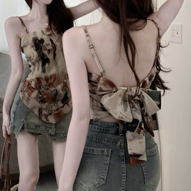 レディース トップス キャミソール 袖なし ノースリーブ スリム 細身 ストレート ドレープ 変形 リボン バックリボン バックコンシャス 薄手 大人可愛い カジュアル おしゃれ かっこいい レトロ アジアン エスニック エキゾチック こなれ感 ルーズ 個性的 クール 主役級 存在感 抜け感 都会的 アクティブ ワイルド ボヘミアン セクシー 染め 春 夏 お出かけ イベント リゾート 海 プール ビーチ 公園 休日 ショッピング 韓国 コーデ 普段使い S M L XL 2XL 大きいサイズ ダーク色