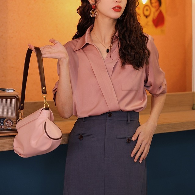 レディース トップス シャツ 5分袖 Vネック 襟付き ポロカラー フェミニン ポケット かわいい 大人可愛い きれいめ シンプル 上品 おしゃれ かっこいい こなれ感 ラフ ルーズ クール モード系 主役級 存在感 フォーマル 抜け感 クラシカル ロマンティック セクシー 無地 夏 オフィス ビジネス OL 通勤 デート お出かけ レストラン 女子会 ショッピング コンサート ライブ 韓国 オルチャン 普段使い 着回し モテ 清楚 S M L ゆったり ゆる 白 ホワイト ピンク ベーシックカラー
