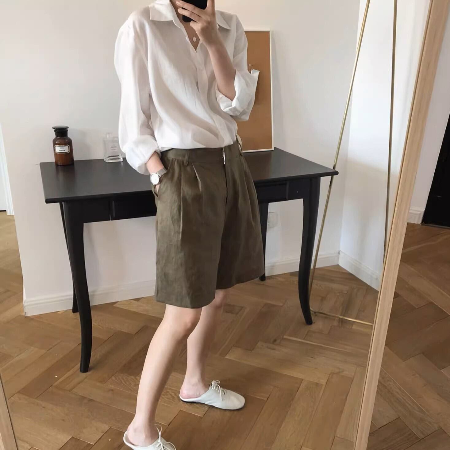タックが入り、落ち着いた色合いが大人可愛いショートパンツです。