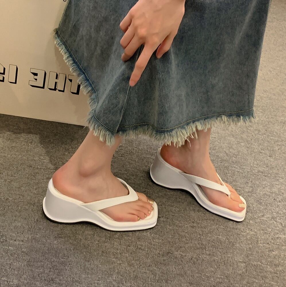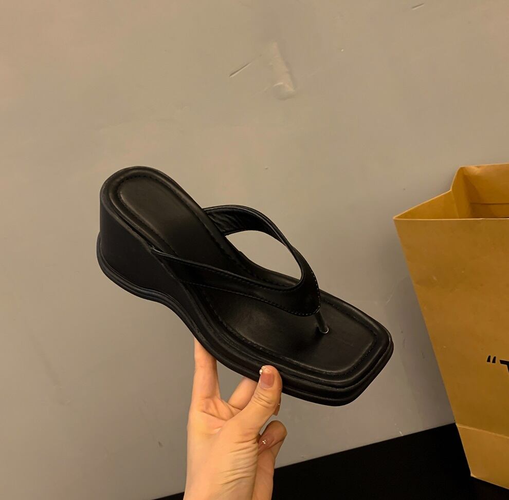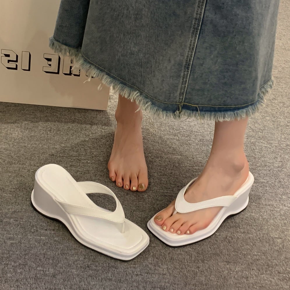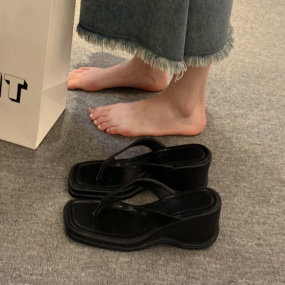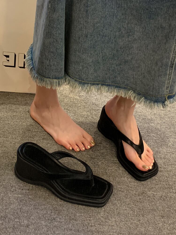 ハイヒール スクエアトゥ トングサンダル レディース サンダル 7cm ウェッジソール スクエアトゥ 美脚 脚長 レザー かわいい 大人可愛い シンプル カジュアル おしゃれ ラフ 無地 春 夏 通勤 通学 デート お出かけ 旅行 公園 休日 普段使い 22.5cm 23.0cm 23.5cm 24.0cm 24.5cm 白 黒 ホワイト ブラック