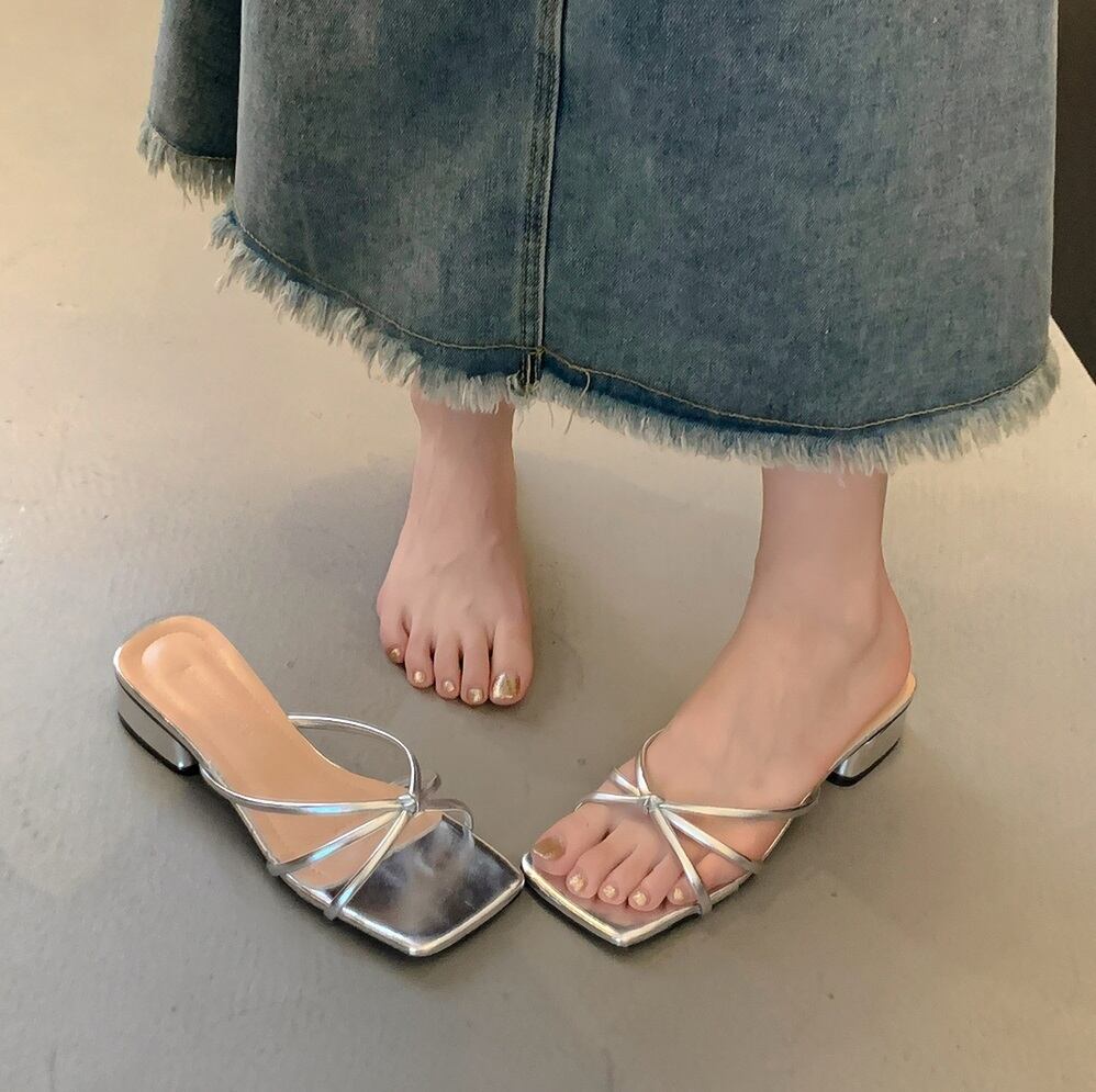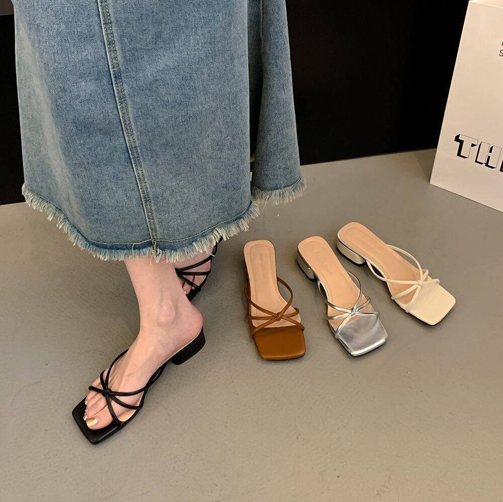 美脚効果抜群!細ストラップ スクエアトゥ ミュールサンダルが新登場しました。足首をスッキリ見せてくれる細いストラップと、トレンド感満載のスクエアトゥデザインが特徴です。3cmの太めのヒールで安定感も抜群。カジュアルからきれいめまで、幅広いコーディネートに対応します。
