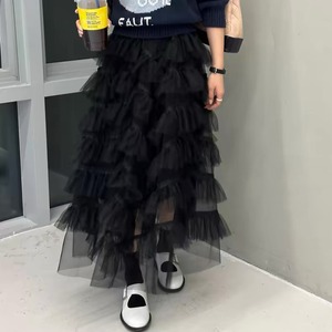 ロング丈なので足元から品のあるボリューム感を演出し、透け感のあるチュール素材で、大人可愛いスタイリングを叶えます。