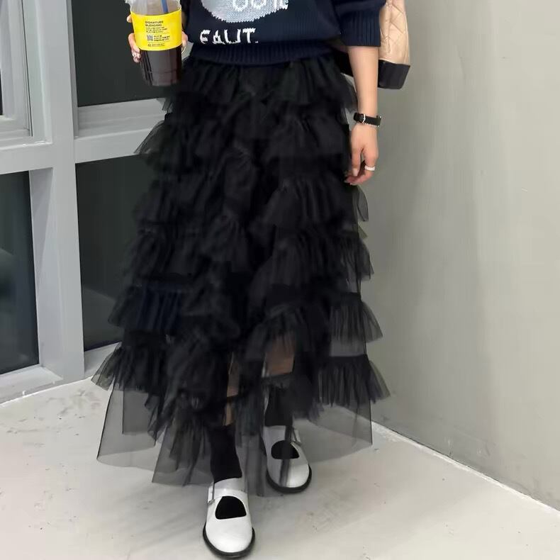 レディース スカート フレア ティアード チュールスカート ロングスカート レーススカート ロング フルレングス フレア Aライン フェミニン プリーツ レース チュール フリル ハイウエスト 透け感 シースルー ギャザー 薄手 大人可愛い おしゃれ ガーリー ルーズ 個性的 モード系 ラグジュアリー ロマンティック 無地 春 夏 二次会 デート お出かけ ショッピング 重ね着 韓国 オルチャン コーデ 楽ちん 体型カバー 普段使い 着回し レイヤード トレンド フリーサイズ 白 ホワイト 黒 ブラック