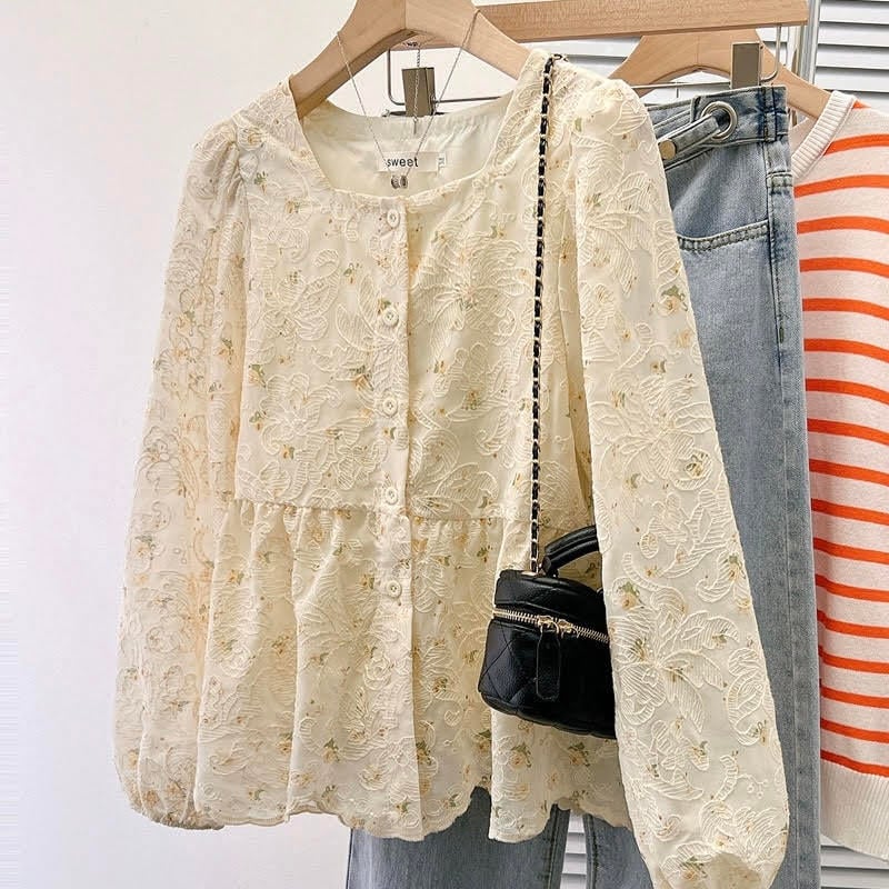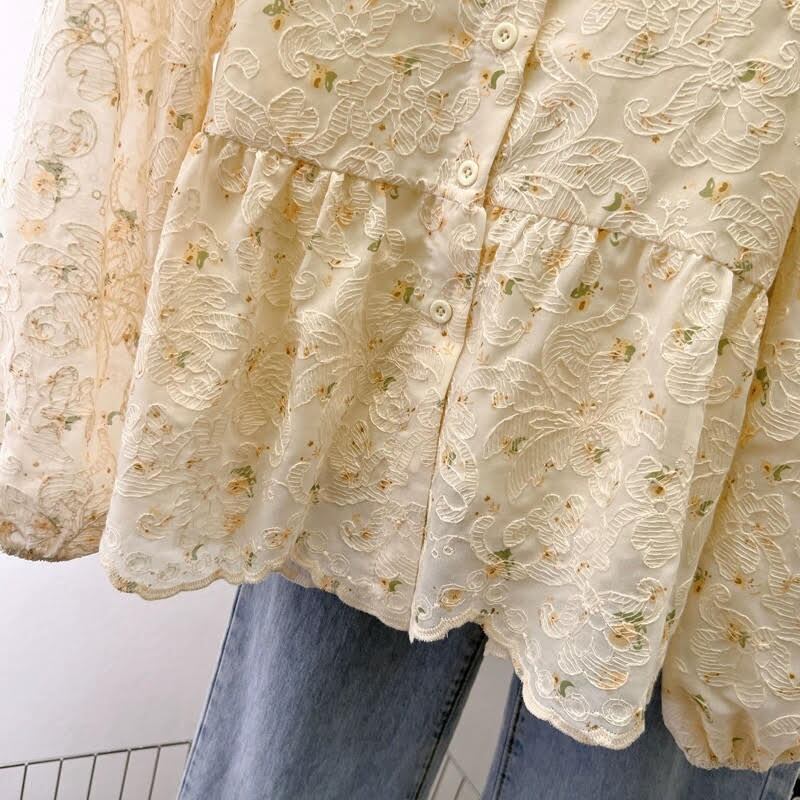 レディース シャツ 長袖 スクエアカラー 裾フリル 花柄 刺繍 ボタン 前開き ルーズ きれいめ 上品 おしゃれ お洒落 大人可愛い 大人女子 かっこいい スタイリッシュ エレガント キュート ラブリー ガーリー フェミニン レトロ 主役級 存在感 こなれ感 抜け感 春 秋 10代 20代 30代 お出かけ デート 女子会 ショッピング レストラン ガーデン お泊まり 普段使い 韓国 韓国系 オルチャン ファッション コーデ トレンド 着回し 美スタイル スタイルアップ インスタ映え S M L XL
