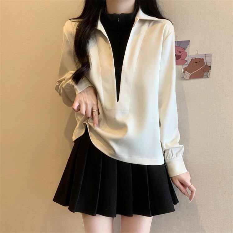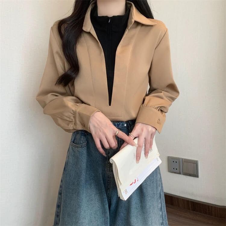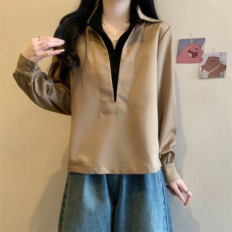 レディース シャツ 長袖 襟付き ポロカラー フェイクツーピース 無地 ルーズ きれいめ 上品 おしゃれ お洒落 大人可愛い 大人女子 かっこいい スタイリッシュ エレガント クール シック モダン フェミニン レトロ 主役級 存在感 こなれ感 抜け感 冬 10代 20代 30代 お出かけ デート 女子会 ショッピング レストラン お泊まり 普段使い デイリー 韓国 韓国系 オルチャン ファッション コーデ トレンド 着回し 美スタイル インスタ映え M L XL 2XL 3XL 4XL ホワイト カーキ