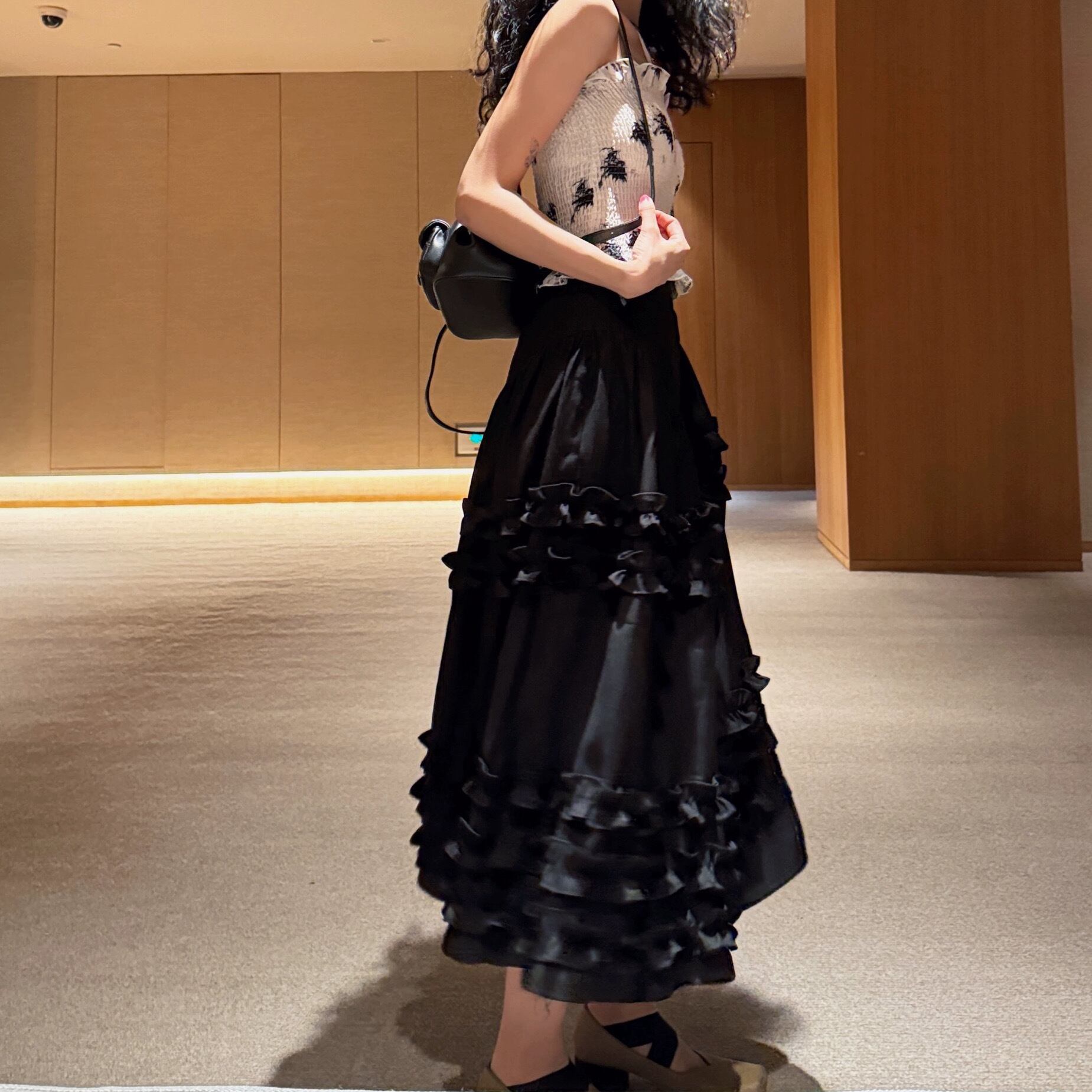 レディース スカート ボトムス フレアスカート ロングスカート ミモレ ロング フレア Aライン 切り替え タックプリーツ フリル ハイウエスト ウエストゴム コンサバ かわいい 大人可愛い 上品 おしゃれ こなれ感 ラフ ガーリー ルーズ 個性的 モード系 エレガント ヴィンテージ キュート ロマンティック 無地 春 夏 秋 二次会 デート お出かけ パーティー 公園 女子会 休日 ガーデン ショッピング モノトーン 韓国 コーデ 楽ちん 体型カバー 普段使い 着回し サイズ S M L 黒 ブラック
