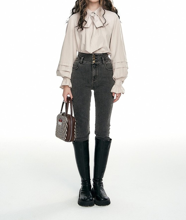 おしゃれな女性のためのトップス!襟付きのレディースブラウスに、リボンとボタンがポイントを添えています。大人可愛いデザインで、シンプルながらもきれいめな印象を与える一枚です。都会的でクールな雰囲気も漂わせつつ、ナチュラルなイメージも取り入れた、バランスのとれたデザインが特徴です。
