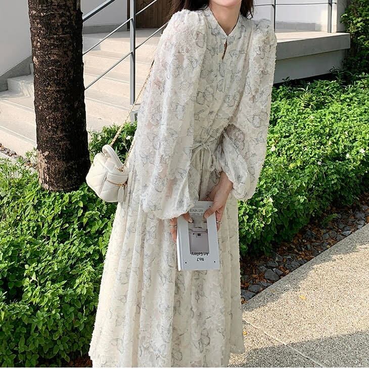 レディース ワンピース 長袖 ランタンスリーブ ロング丈 バタフライ 蝶 プリント Aライン ウエストリボン ルーズ きれいめ 上品 おしゃれ お洒落 シンプル カジュアル 大人可愛い 大人女子 かっこいい スタイリッシュ キュート ラブリー ガーリー フェミニン レトロ 主役級 存在感 こなれ感 抜け感 春 秋 10代 20代 お出かけ デート 女子会 お泊まり 旅行 休日 ショッピング 普段使い デイリー 韓国 オルチャン ファッション コーデ トレンド スタイルアップ S M L XL ホワイト