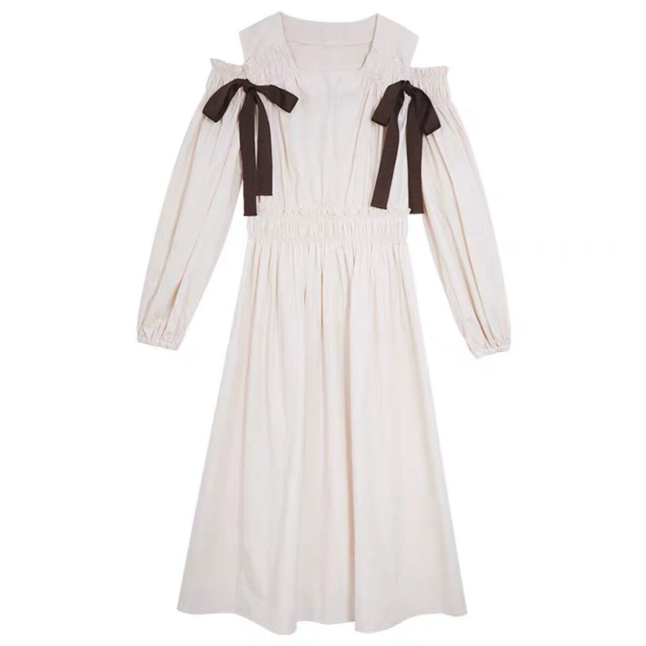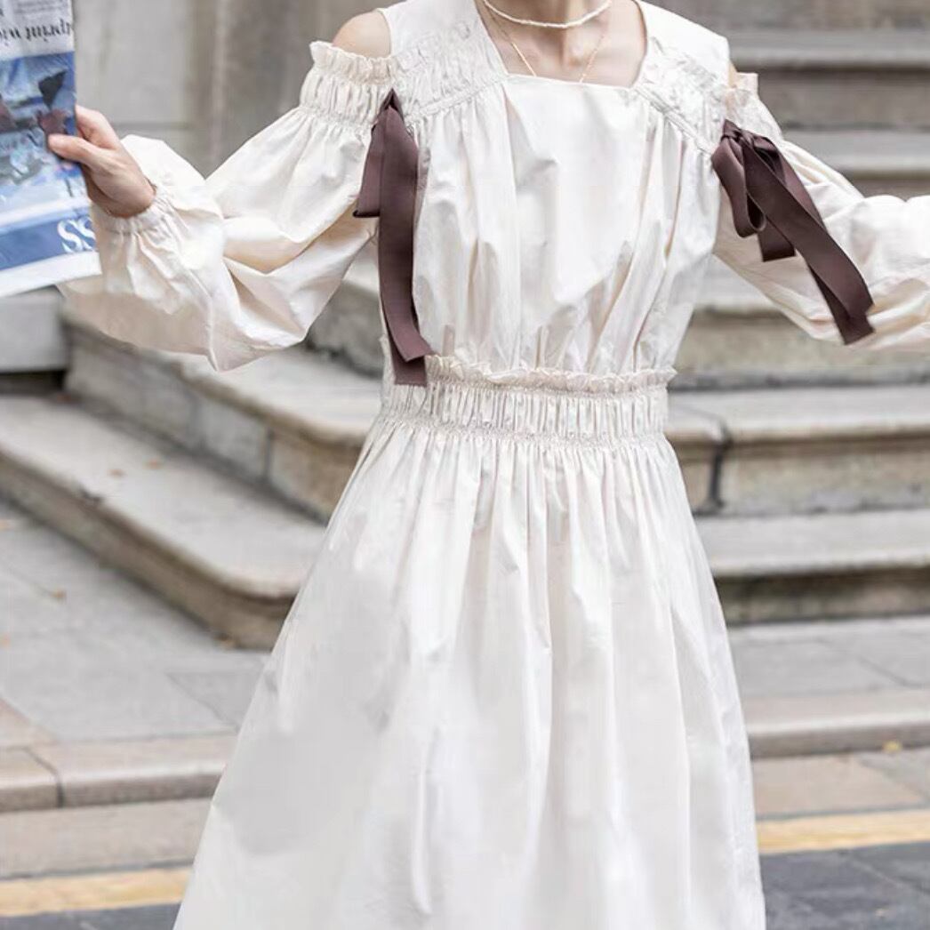 レディース スカート ワンピース プルオーバー ギャザースカート フレアスカート ロングスカート ロング 長袖 ボリューム袖 バルーン袖 スクエアネック オフショルダー 肩出し フレア Aライン 切り替え ドッキング フェミニン 綿 かわいい 大人可愛い シンプル カジュアル おしゃれ レトロ ラフ ガーリー ルーズ 抜け感 クラシカル ナチュラル 無地 春 秋 デート お出かけ 公園 女子会 休日 ガーデン ショッピング カフェ 韓国 コーデ 楽ちん 体型カバー 普段使い モテ S M L アプリコット