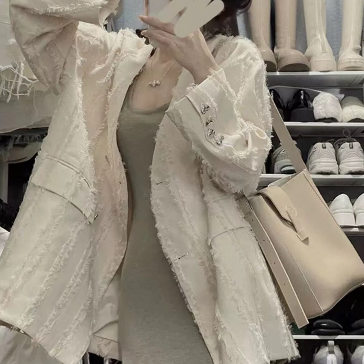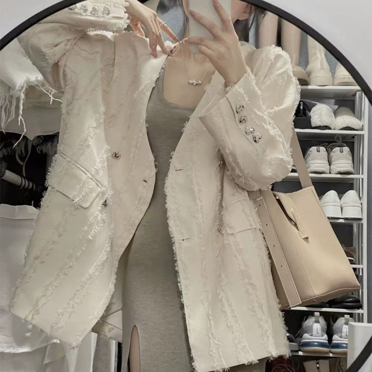 レディース ジャケット 上着 羽織 前開き ノーカラージャケット 長袖 Vネック 襟なし ノーカラー ストレート オーバーサイズ フェミニン ポケット コンサバ ボタン ヴィンテージ シャギー かわいい 大人可愛い きれいめ シンプル カジュアル 上品 おしゃれ かっこいい こなれ感 ラフ ルーズ クール エレガント ロマンティック 無地 春 秋 二次会 発表会 デート お出かけ パーティー 公園 女子会 休日 ショッピング 韓国 オルチャン コーデ 普段使い 着回し モテ S M L ゆる ベージュ