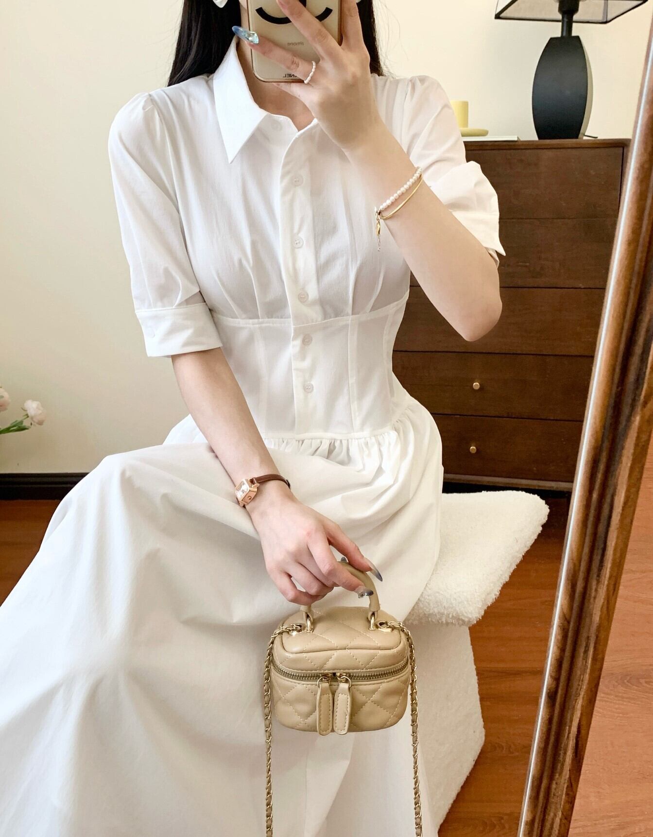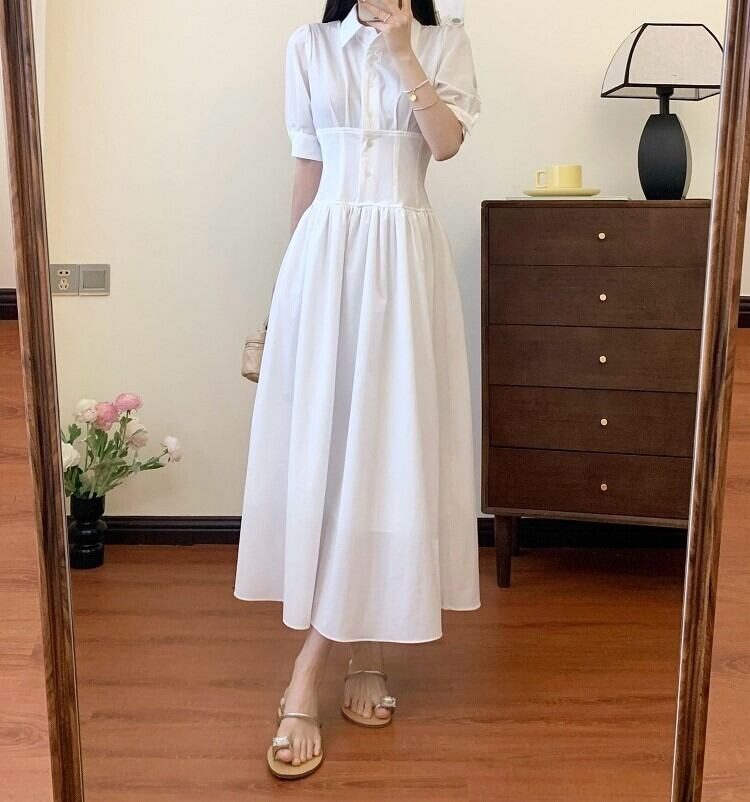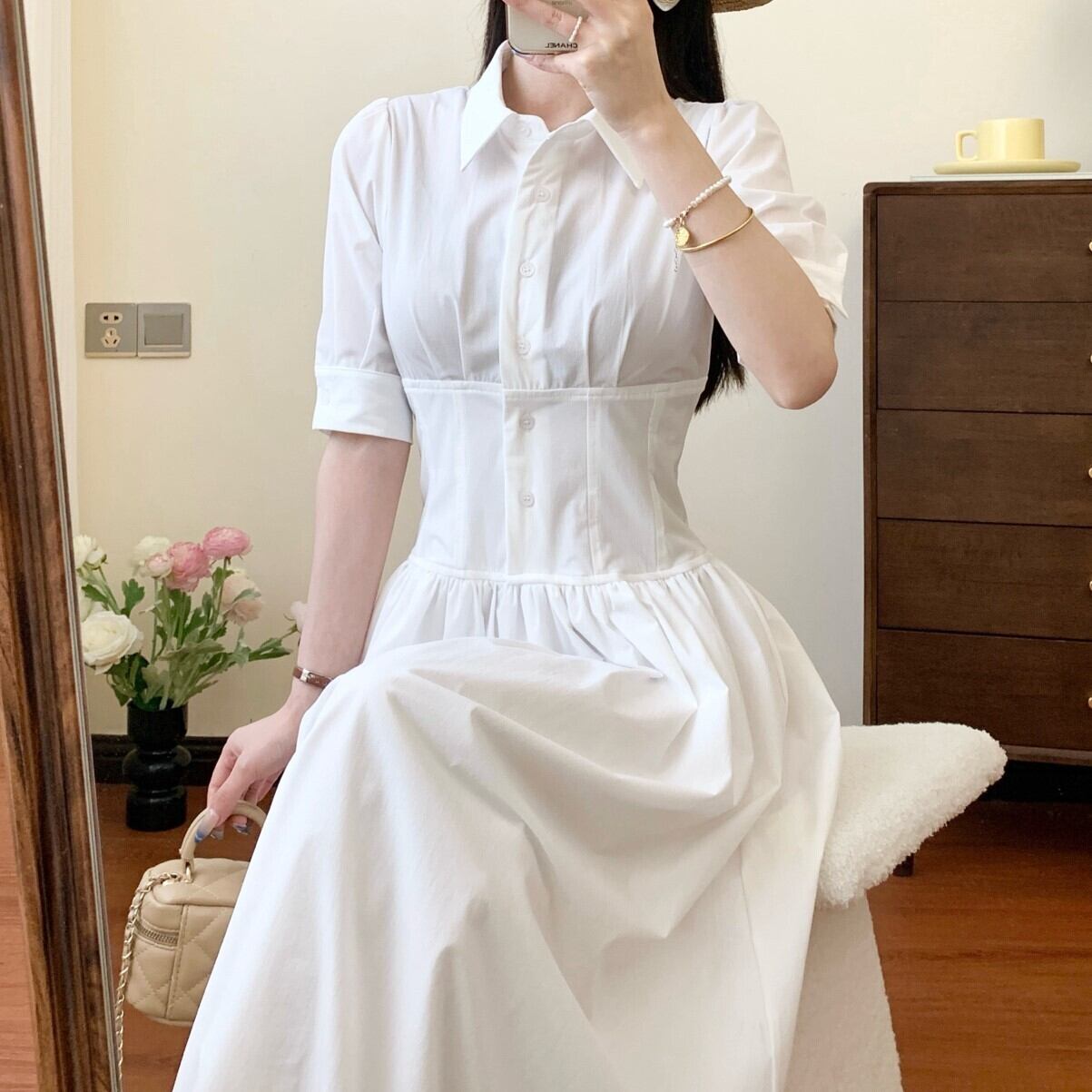 レディース ワンピース ドレス シャツワンピ ロング 半袖 襟付き ハイウエスト 大人可愛い きれいめ 上品 おしゃれ かっこいい ラフ ガーリー クール エレガント 存在感 フォーマル 都会的 ロマンティック ナチュラル 無地 春 夏 通勤 デート お出かけ お泊まり パーティー イベント 旅行 海 ビーチ 公園 女子会 休日 バカンス ホテル ショッピング コンサート ライブ カフェ 韓国 コーデ 楽ちん プレゼント 美脚 脚長 普段使い 着回し モテ インスタ映え XS S M L ホワイト