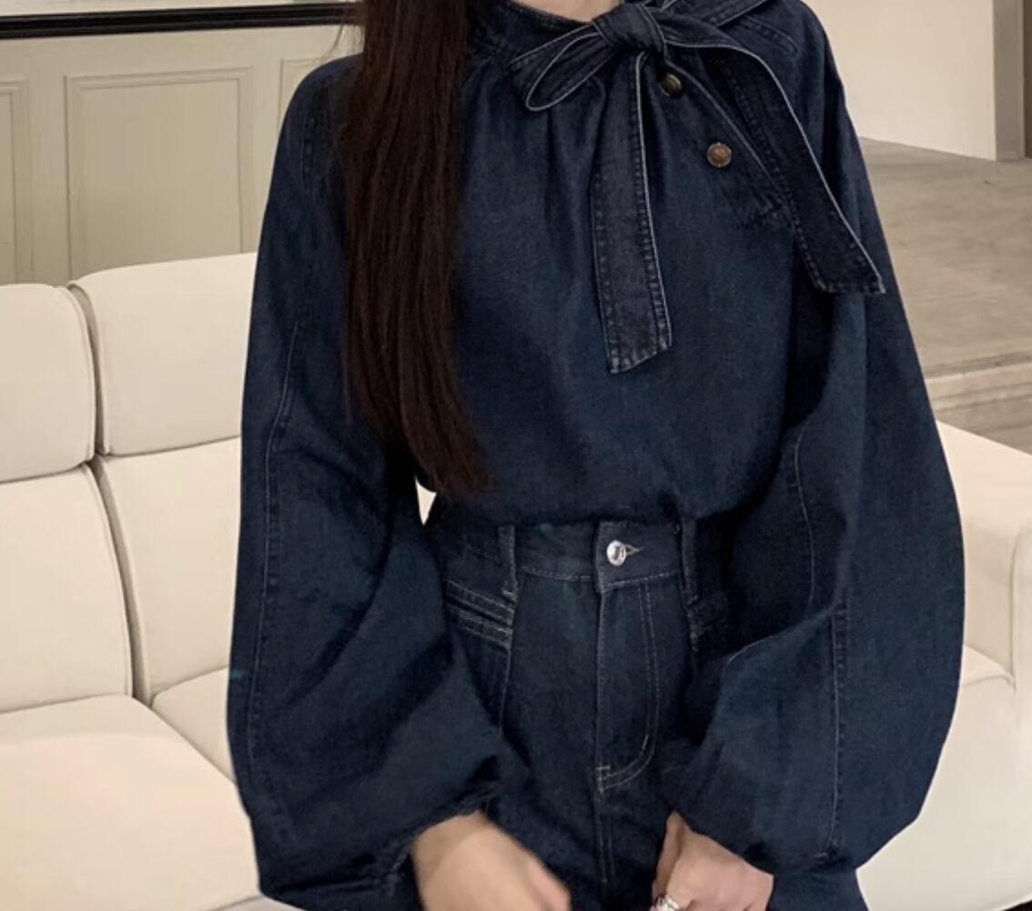 トップス パンツ セットアップ ツーピース デニム 長袖 フェミニン リボン ブルーデニム かわいい 大人可愛い きれいめ シンプル カジュアル 上品 おしゃれ かっこいい レトロ こなれ感 ラフ メンズライク ボーイッシュ 個性的 クール モード系 主役級 存在感 抜け感 ゴシック 都会的 ナチュラル 春 秋 OL 学生 デート お出かけ イベント 旅行 女子会 休日 ショッピング コンサート ライブ カフェ オルチャン コーデ 楽ちん 普段使い 着回し モテ 清楚 インスタ映え S M L ブルー